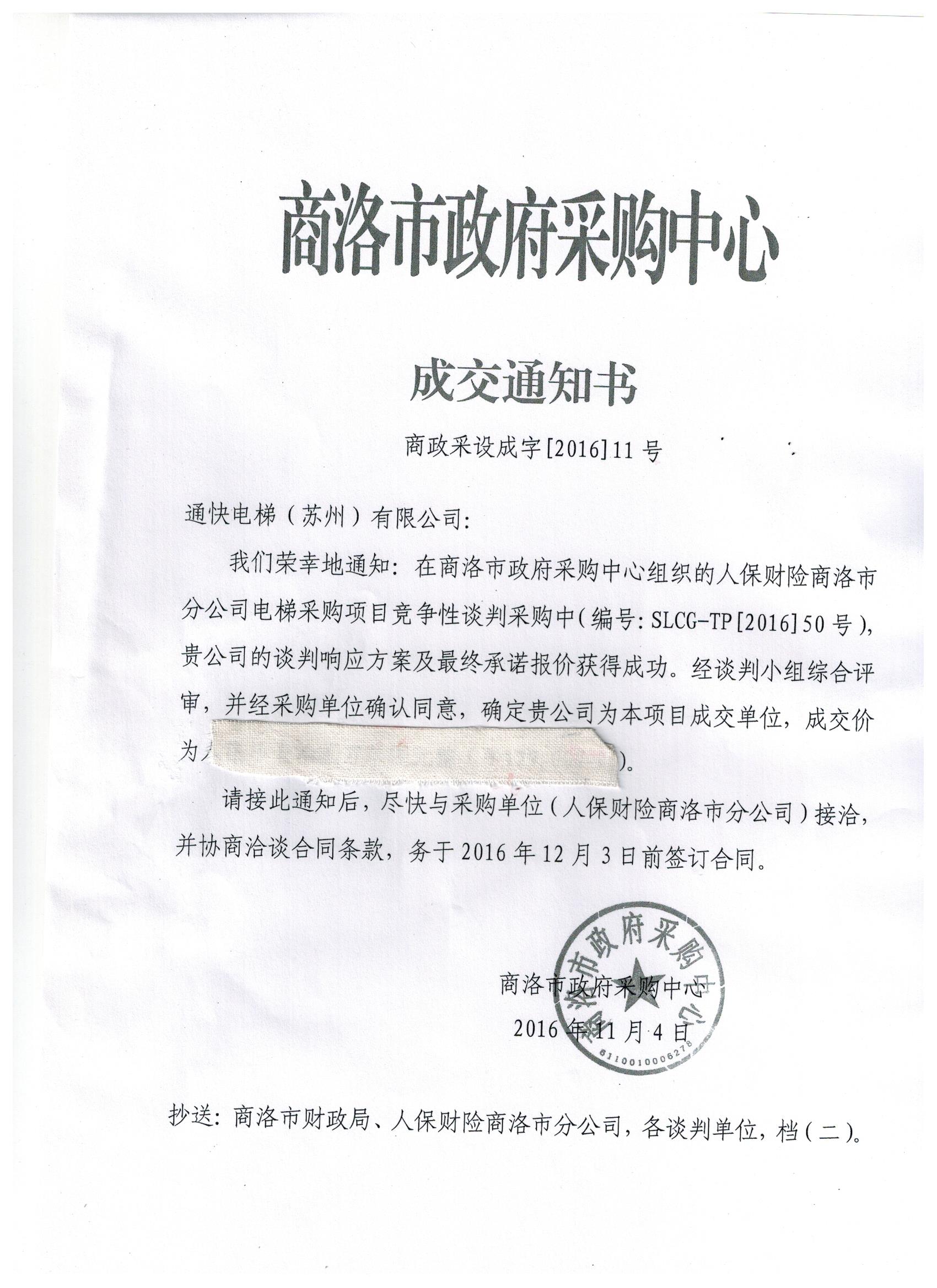 通快電梯(蘇州)有限公司中標(biāo)人保財(cái)險商洛分公司電梯項(xiàng)目